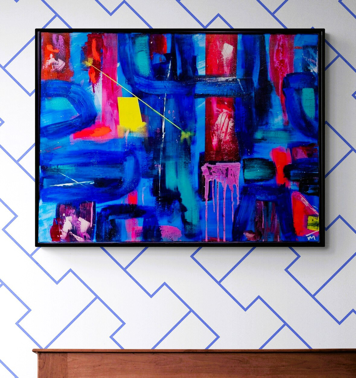 Mixed Media on Canvas in Black Frame